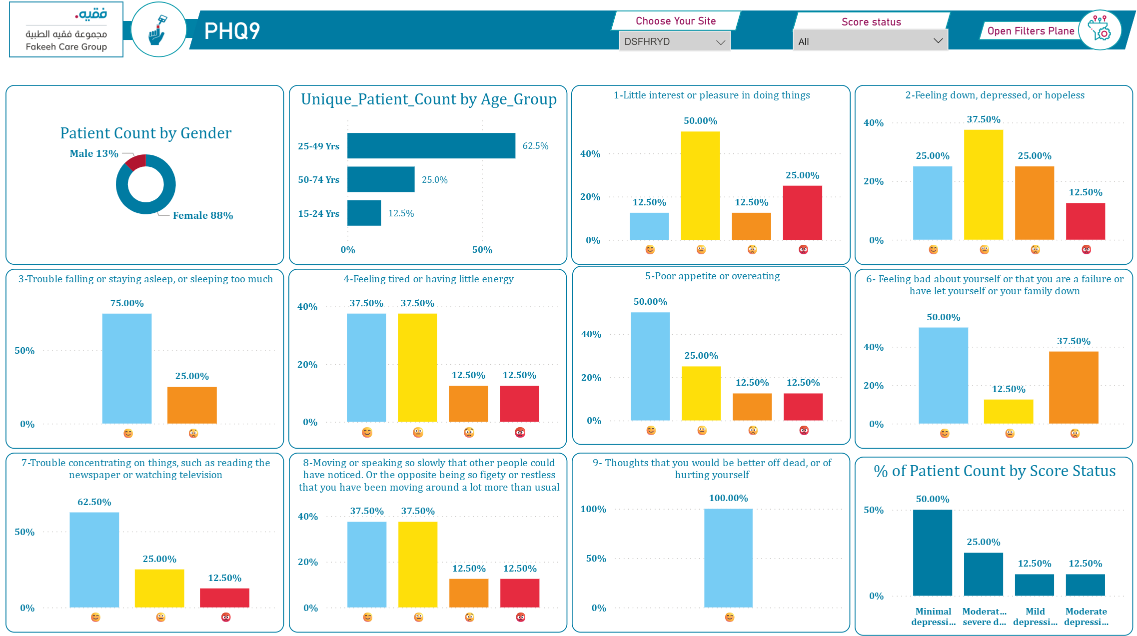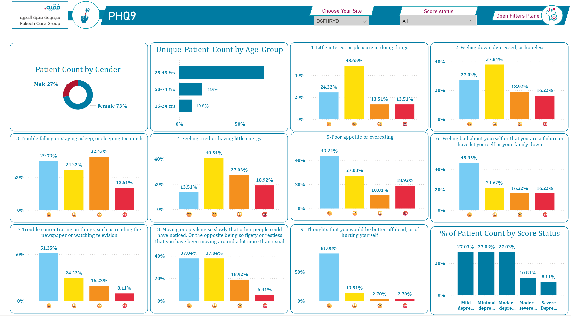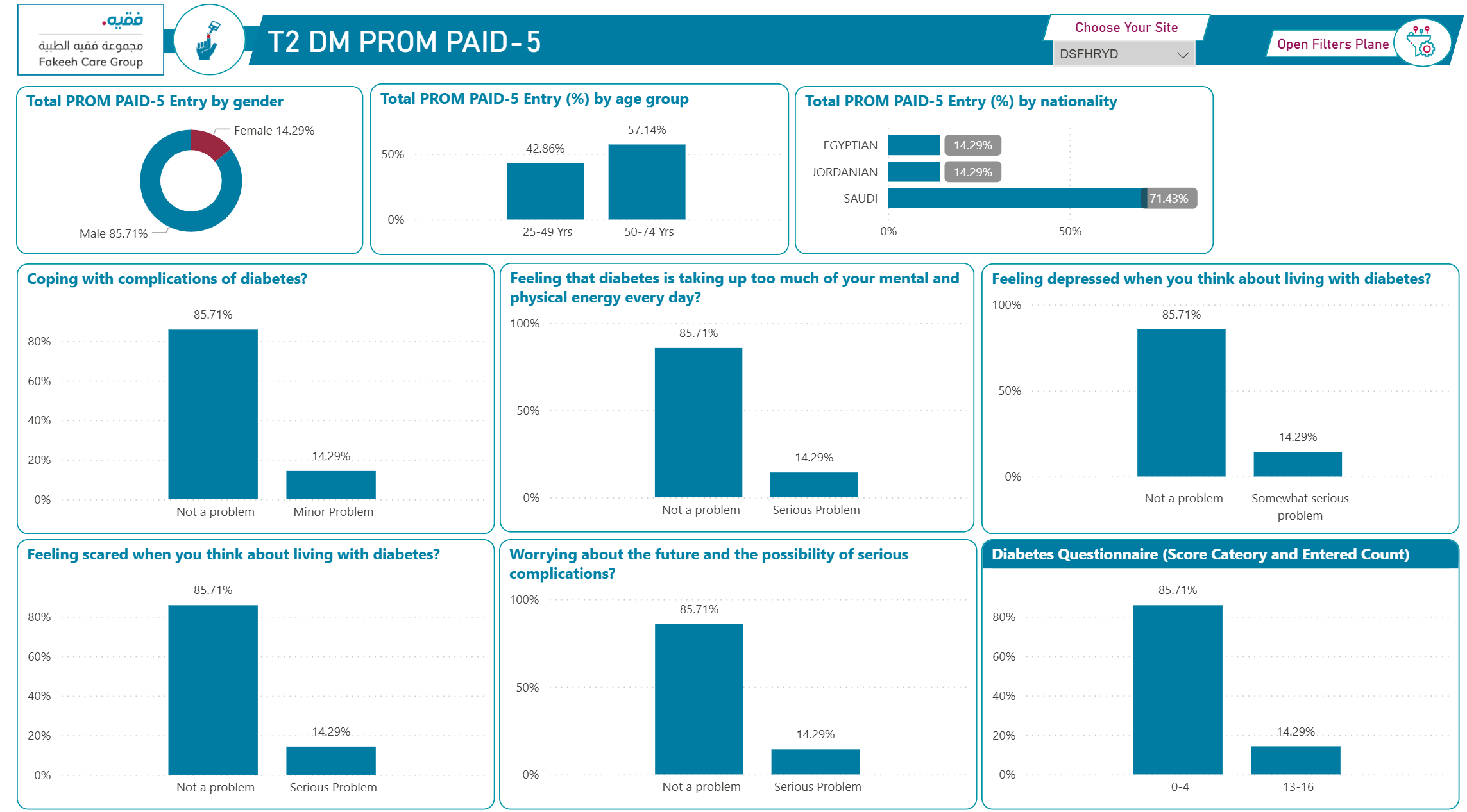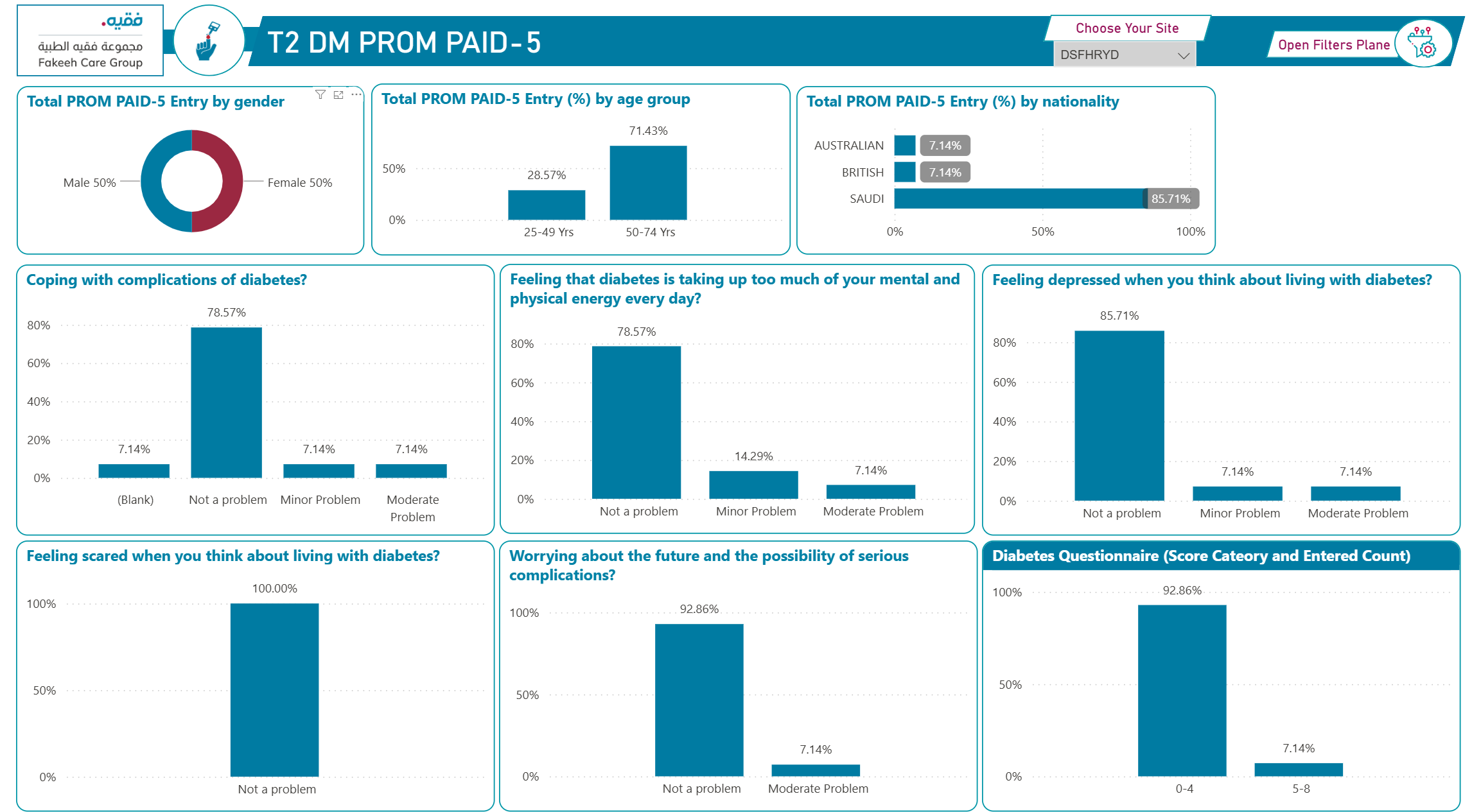 في إطار التزامنا بالشفافية ، نقدم النتائج والتقارير المستخلصة من استبيانات PAID-5 وEQ-5D-5L. عن طريق عرض الرسوم البيانية والبيانات الرئيسية، مثل مستويات التوتر التي أبلغ عنها المرضى من خلال PAID-5، وتقييمات جودة الصحة العامة عبر EQ-5D-5L. من خلال مشاركة هذه البيانات مع مجتمعنا، نهدف إلى تعزيز بيئة تعاونية حيث يمكن للمرضى مشاهدة تأثير ملاحظاتهم على خدمات الرعاية الصحية. هذه الشفافية تؤكد التزامنا بالتحسين المستمر لنتائج الصحة وتعزيز جودة الرعاية التي نقدمها.